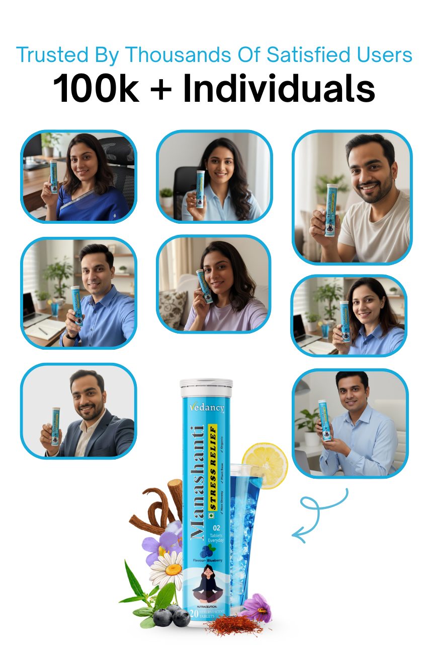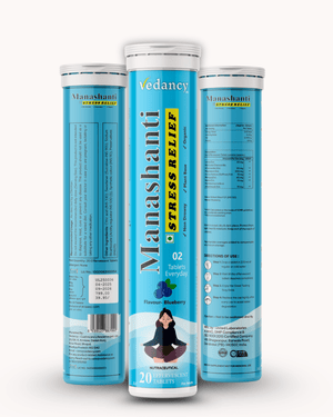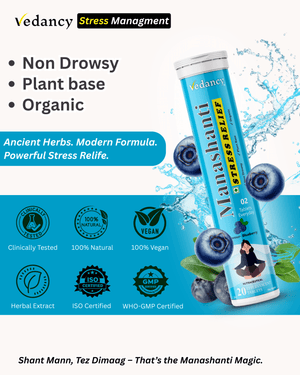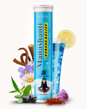 Vedancy Manashanti β Herbal Stress Support Effervescent Tablets | Blueberry Flavor | Non-Drowsy | Plant-Based & Organic | 20 Tabs