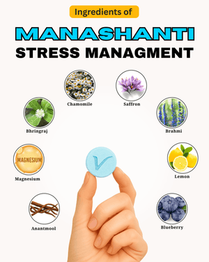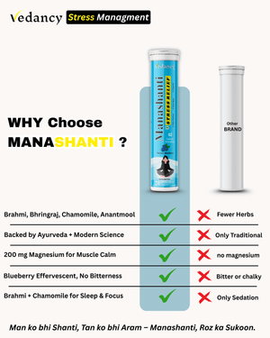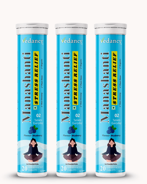 Manashanti is a refreshing effervescent tablet crafted with Ayurvedic-inspired herbs and essential minerals to support calmness, focus, and overall well-being. With a delightful Blueberry flavor, it offers a modern, non-drowsy way to include natural relaxation in your daily wellness routine.
