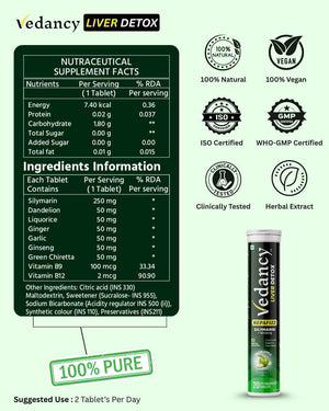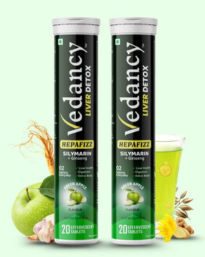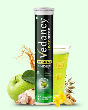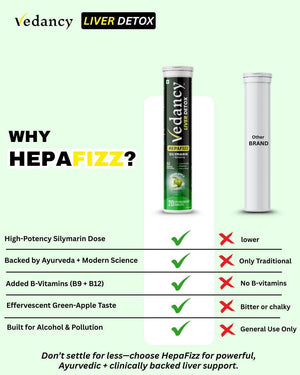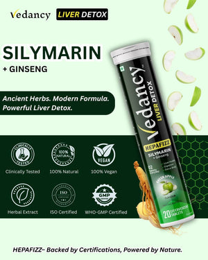 Vedancy HepaFizz – Herbal Liver Wellness Effervescent Tablets | Milk Thistle (Silymarin 250 mg), Vitamin B9 & B12 + 6 Ayurvedic Herbs