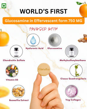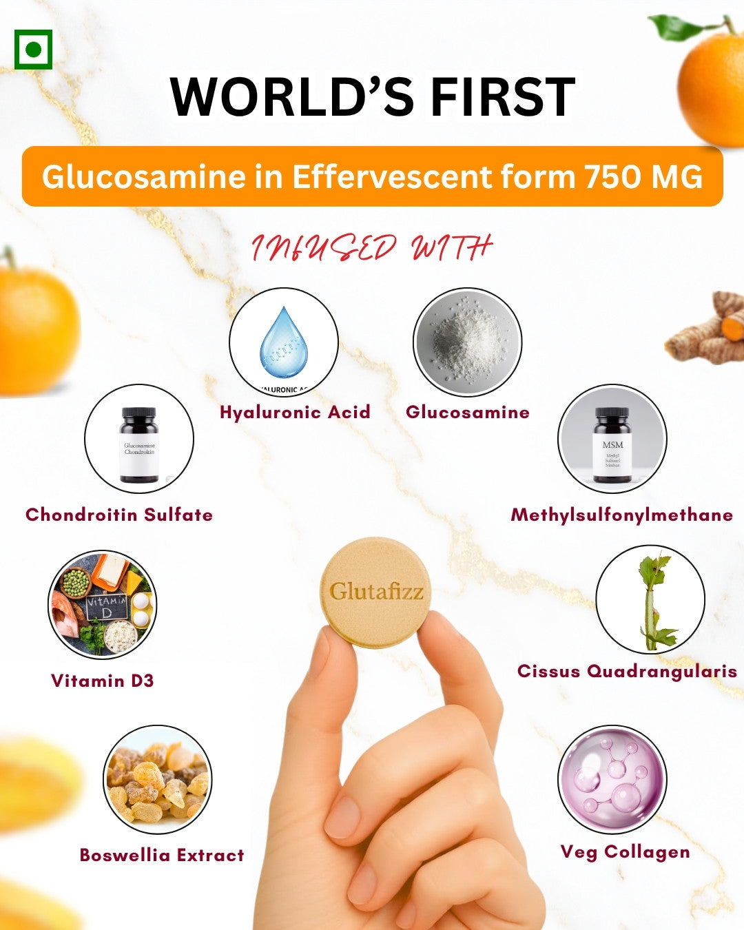 Formulated with a premium blend of Glucosamine, Chondroitin, Veg Collagen, Boswellia, Curcumin (Turmeric Extract), Hyaluronic Acid, and Vitamin D3, this advanced effervescent supplement helps reduce joint discomfort, support cartilage regeneration, and improve overall mobility naturally.