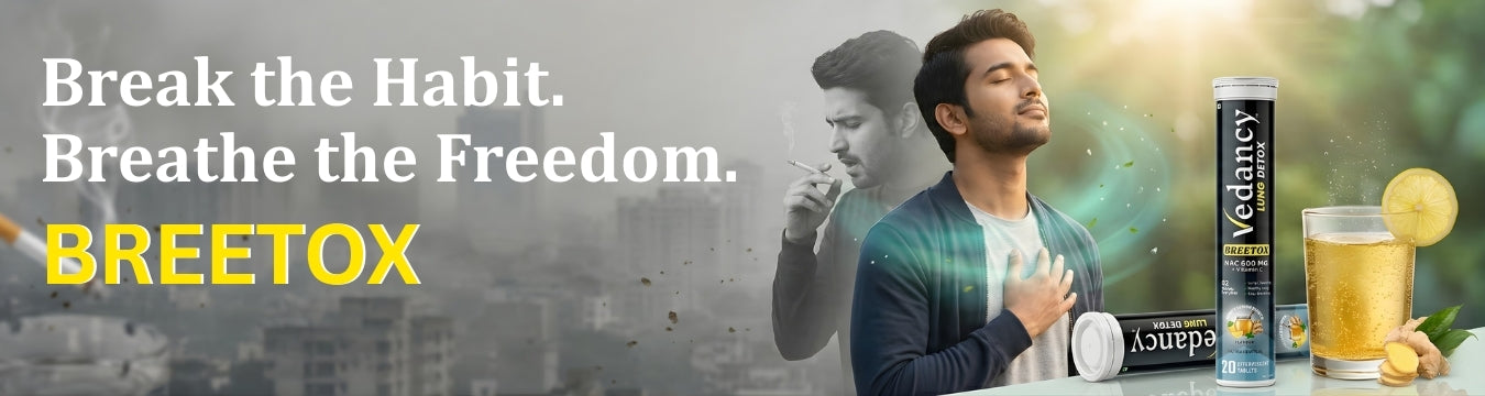Vedancy Breetox – Herbal Lung Wellness Effervescent Tablets | Honey Lemon Ginger Flavor | With NAC, Vitamin C & Ayurvedic Herbs